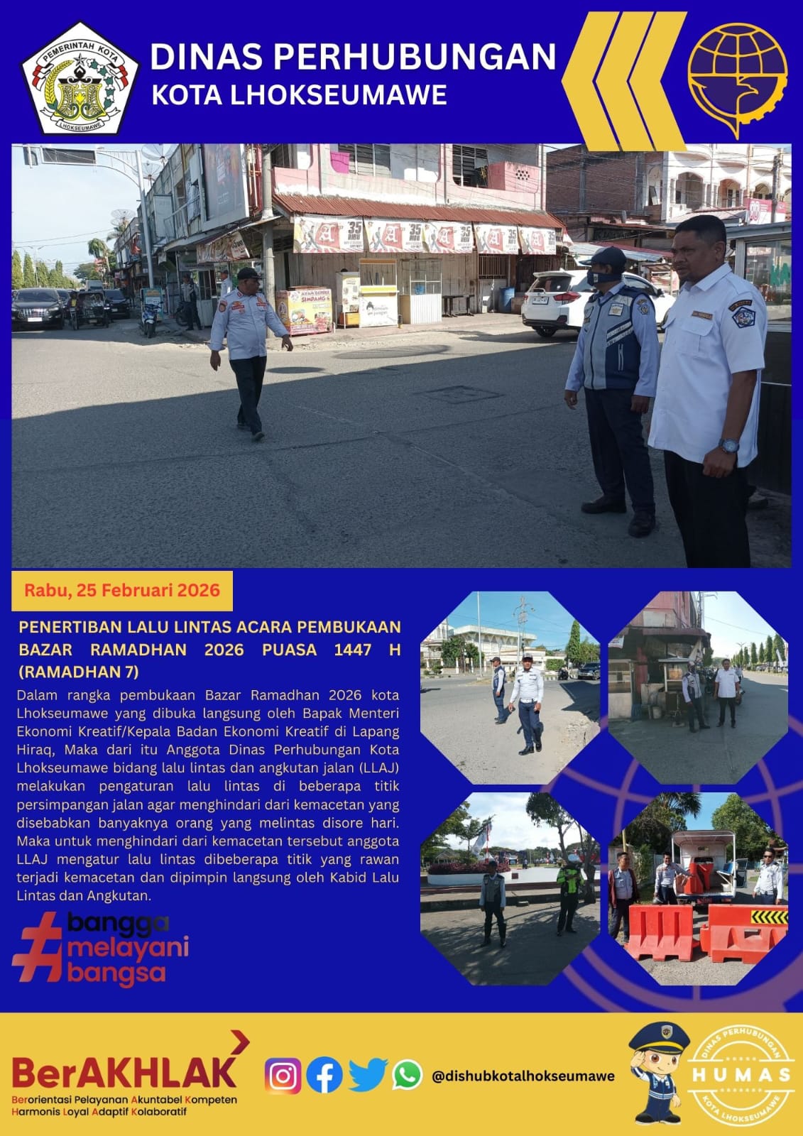 Dalam rangka acara pembukaan Bazar Ramadhan 2026 di Kota Lhokseumawe yang dibuka langsung oleh Bapak Menteri Ekonomi Kreatif di lapangan Hiraq Kota Lhokseumawe, maka dari itu anggota Dinas Perhubungan…